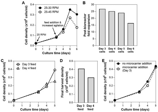 3.3. Bioreactor Culture Parameters: Agitation Speed, Day of Bioreactor Feed, Microcarrier Addition