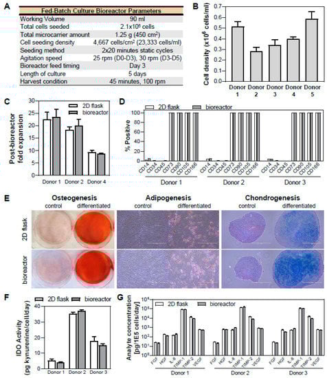 - Mizukami, A.; Fernandes-Platzgummer, A.; Carmelo, J.G.; Swiech, K.; Covas, D.T.; Cabral, J.M.S.; da Silva, C.L. Stirred tank bioreactor culture combined with serum-/xenogeneic-free culture medium enables an efficient expansion of umbilical cord-derived mesenchymal stem/stromal cells. Biotechnol. J. 2016, 11, 1048–1059. [Google Scholar] [CrossRef] [PubMed]