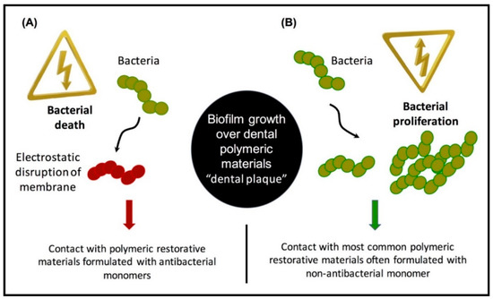 One strategy to provide a durable, long-lasting restoration is the incorporation of antimicrobial agents to control and/or eliminate these infections. Similarly, any strategy that could disrupt the formation of biofilms would be considered clinically valuable as a route to control infections related to biofilm accumulation. To address these issues, extensive efforts have been focused on developing surfaces with antibacterial properties that can diminish the degree of bacterial attachment initially, thus preventing the formation of biofilms [10,11,13].