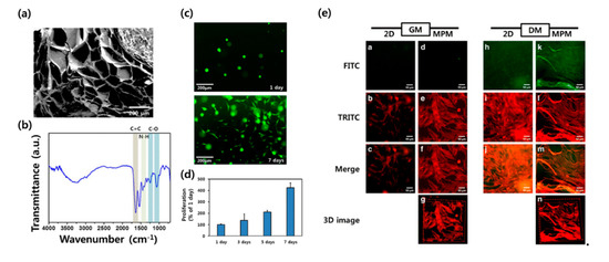 - Kim, M.J.; Shin, Y.C.; Lee, J.H.; Jun, S.W.; Kim, C.-S.; Lee, Y.; Park, J.-C.; Lee, S.-H.; Park, K.D.; Han, D.-W. Multiphoton imaging of myogenic differentiation in gelatin-based hydrogels as tissue engineering scaffolds. Biomater. Res. 2016, 20, 2. [Google Scholar] [CrossRef] [PubMed]