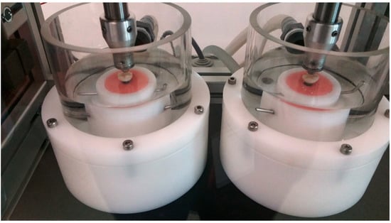 - DeLong, R.; Douglas, W.H. Development of an artificial oral environment for the testing of dental restoratives: Bi-axial force and movement control. J. Dent. Res. 1983, 62, 32–36. [Google Scholar] [CrossRef] [PubMed]