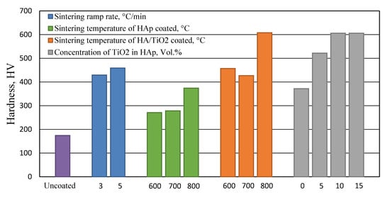 - Dikici, B.; Niinomi, M.; Topuz, M.; Say, Y.; Aksakal, B.; Yilmazer, H.; Nakai, M. Synthesis and Characterization of Hydroxyapatite/TiO2 Coatings on the β-Type Titanium Alloys with Different Sintering Parameters using Sol-Gel Method. Prot. Met. Phys. Chem. Surfaces 2018, 54, 457–462. [Google Scholar] [CrossRef]