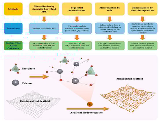 - Zou, L.; Zhang, Y.; Liu, X.; Chen, J.; Zhang, Q. Biomimetic mineralization on natural and synthetic polymers to prepare hybrid scaffolds for bone tissue engineering. Colloids Surf. B Biointerfaces 2019, 178, 222–229. [Google Scholar] [CrossRef]