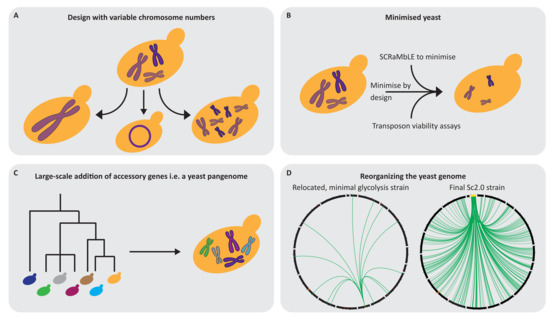 - Shao, Y.; Lu, N.; Wu, Z.; Cai, C.; Wang, S.; Zhang, L.L.; Zhou, F.; Xiao, S.; Liu, L.; Zeng, X.; et al. Creating a functional single-chromosome yeast. Nature 2018, 560, 331–335. [Google Scholar] [CrossRef] [PubMed]