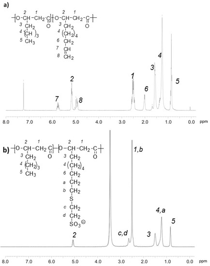 - Modjinou, T.; Lemechko, P.; Babinot, J.; Versace, D.L.; Langlois, V.; Renard, E. Poly(3-hydroxyalkanoate) sulfonate: From nanopartices toward water soluble polyesters. Eur. Polym. J. 2015, 68, 471–479. [Google Scholar]