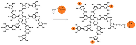 2.4. Synthesis of Trimethyl Ammonium Tannic Acid: TA-N(CH3)3+