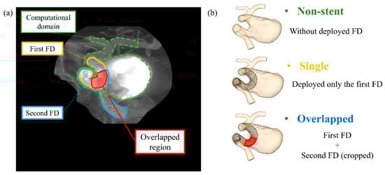 - Damiano, R.J.; Tutino, V.M.; Paliwal, N.; Ma, D.; Davis, J.M.; Siddiqui, A.H.; Meng, H. Compacting a Single Flow Diverter versus Overlapping Flow Diverters for Intracranial Aneurysms: A Computational Study. AJNR Am. J. Neuroradiol. 2017, 38, 603–610. [Google Scholar] [CrossRef] [PubMed]