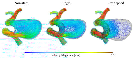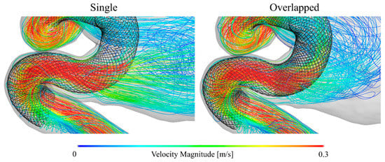 4.2. Hemodynamic Differences between Single and Overlapped Stent Patterns