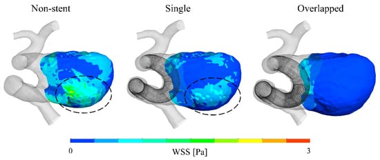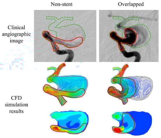 - Jing, L.; Zhong, J.; Liu, J.; Yang, X.; Paliwal, N.; Meng, H.; Wang, S.; Zhang, Y. Hemodynamic Effect of Flow Diverter and Coils in Treatment of Large and Giant Intracranial Aneurysms. World Neurosurg. 2016, 89, 199–207. [Google Scholar] [CrossRef]