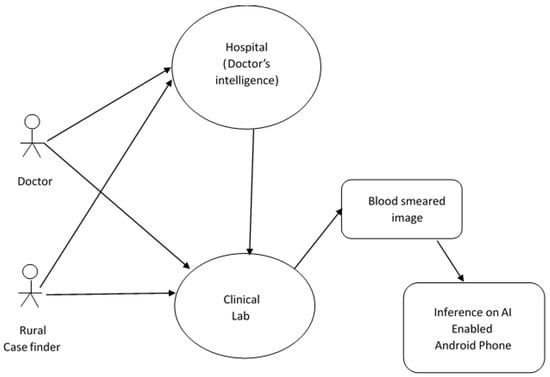 Use case for a typical local case finder The original expertise of thousands of medical doctors and lab technicians are contained in the original data set used to train machine learning models which less educated rural case finders can utilise for diagnosis without having the actual intelligence of medical doctors and lab technicians.