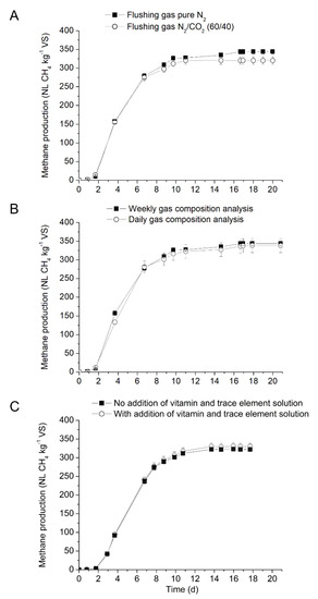 5. Holliger, C.; Alves, M.; Andrade, D.; Angelidaki, I.; Astals, S.; Baier, U.; Bougrier, C.; Buffière, P.; Carballa, M.; De Wilde, V. Towards a standardization of biomethane potential tests. Water Sci. Technol. 2016, 74, 2515–2522. [Google Scholar] [CrossRef] [PubMed]