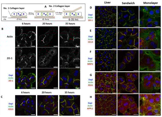 - Zeigerer, A.; Wuttke, A.; Marsico, G.; Seifert, S.; Kalaidzidis, Y.; Zerial, M. Functional properties of hepatocytes in vitro are correlated with cell polarity maintenance. Exp. Cell Res. 2017, 350, 242–252. [Google Scholar] [CrossRef]