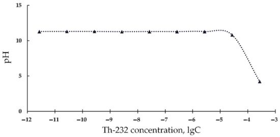 The pH of thorium solutions (10−11–10−3 M) was measured in the presence of luminol (5 × 10−4 M). The pH of luminol solutions was 11. The measurements were carried out in 3 replications; error did not exceed 2%.