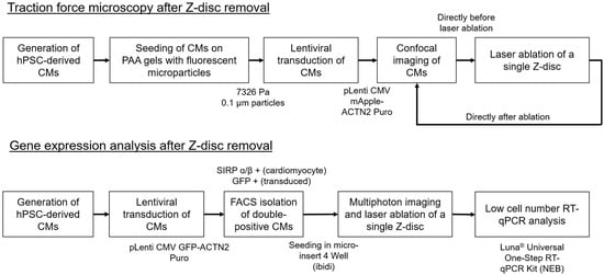 - Müller, D.; Hagenah, D.; Biswanath, S.; Coffee, M.; Kampmann, A.; Zweigerdt, R.; Heisterkamp, A.; Kalies, S.M.K. Femtosecond laser-based nanosurgery reveals the endogenous regeneration of single Z-discs including physiological consequences for cardiomyocytes. Sci. Rep. 2019, 9, 3625. [Google Scholar] [CrossRef]