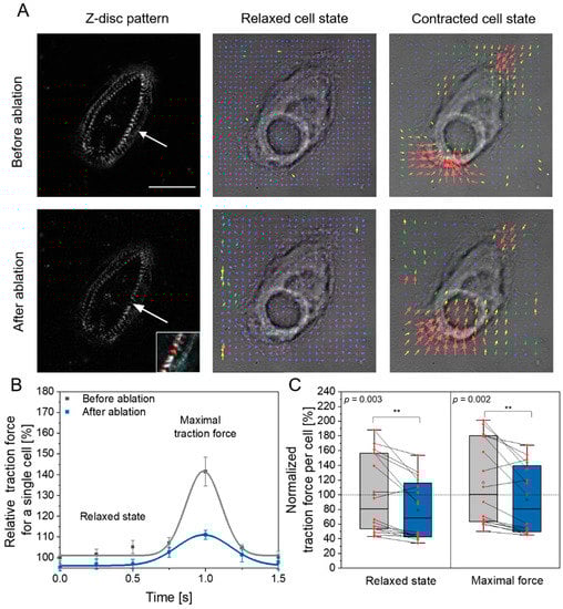 3.1. Single Z-Disc Removal Leads to Lowered Force Generation in Cardiomyocytes