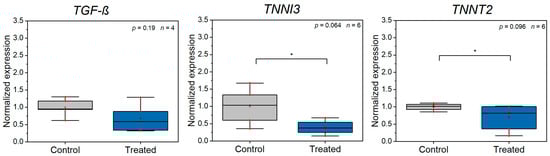 | TNNT2 | Cardiac muscle troponin T | TGGAGGCAGAGAAGTTCGAC | CCTGTTTCGGAGAACATTGAT | Involved in sarcomere assembly and contraction. Marker of myocardial injury. | [47] |