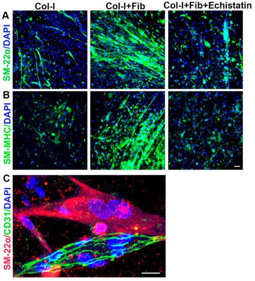 - Bargehr, J.; Low, L.; Cheung, C.; Bernard, W.G.; Iyer, D.; Bennett, M.R.; Gambardella, L.; Sinha, S. Embryological Origin of Human Smooth Muscle Cells Influences Their Ability to Support Endothelial Network Formation. Stem Cells Transl. Med. 2016, 5, 946–959. [Google Scholar] [CrossRef]