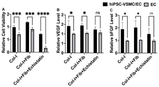 3.3. hiPSC-VSMC Irrespective of Fibronectin Enhanced the Viability and Proangiogenic Growth Factor Secretion