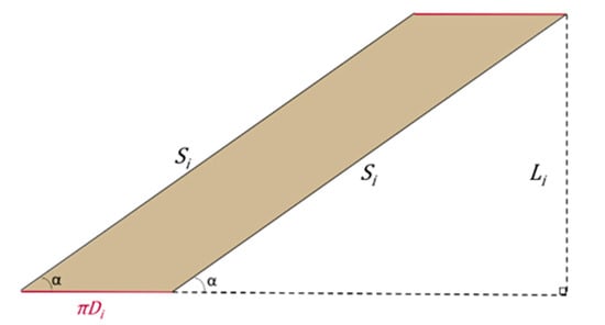 However, taking into account the triangle that must be removed for a correct re-wrapping of the cylinder with the new diameter (as shown above in Figure 4b), the total final spiral length, defined as results as: