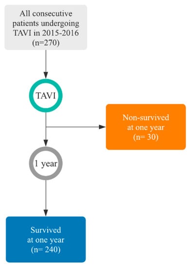 - Debonnaire, P.; Fusini, L.; Wolterbeek, R.; Kamperidis, V.; Van Rosendael, P.; Van Der Kley, F.; Katsanos, S.; Joyce, E.; Tamborini, G.; Muratori, M. Value of the “TAVI2-SCORe” versus surgical risk scores for prediction of one year mortality in 511 patients who underwent transcatheter aortic valve implantation. Am. J. Cardiol. 2015, 115, 234–242. [Google Scholar] [CrossRef]