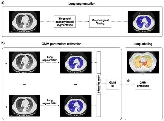 https://github.com/pzaffino/COVID19-intensity-labeling (accessed on 15 February 2021). The precomputed GMM model was uploaded in the same repository as well. Label generation was performed by using Python