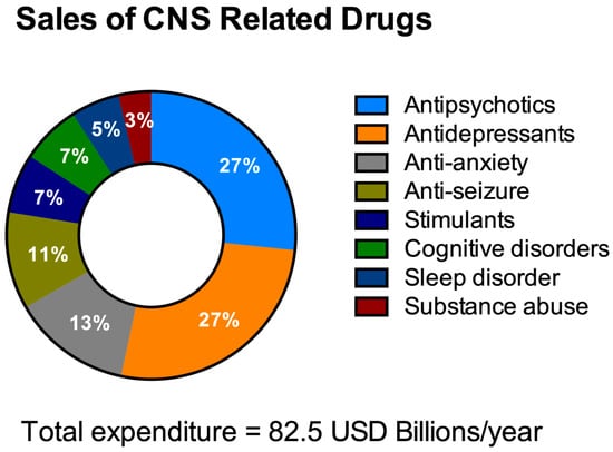 It is crucial to extensively enhance our knowledge and understanding of CNS diseases in order to be able to develop effective therapies. Interestingly, despite the number of individuals in the US who experience CNS disorders being more than double than people who suffer from cardiovascular diseases (CVDs), the global market for CNS therapeutics constitutes less than a third of the global drug market for CVDs []. Therefore, the CNS drug market would have to increase by over 5-fold just to correspond to the global market for CVDs.