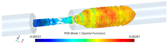 Visualization of POD mode 1 with the highest energy in the stenosis and post-stenotic region.