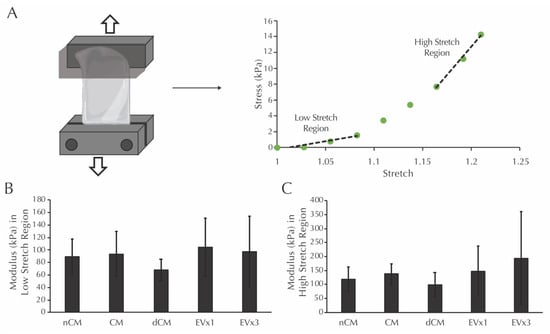 3.7. ASC-Derived EVs Did Not Affect the Modulus in the Low or High Stretch Regions of Strands after 30 Days of Culture