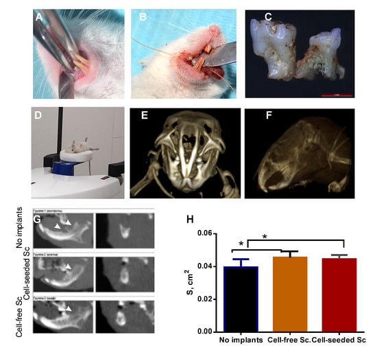 3.2. Alveolar Bone Defect In Vivo. Influence of Cell-Seeded Implant on Bone Remodeling