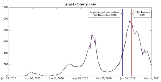 The Middle-Eastern country Israel was taken as an important case to study since it has shown itself as very advanced in the vaccination process. From the analysis of data on new cases and deaths presented in Figure 3 and Figure 4, the case of Israel presents a different behavior from that of the European countries also used in the present study.