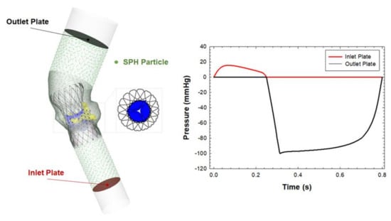 Model adopted for the fluid–solid interaction analysis and physiological pressure boundary conditions adopted to move the SPH particle.