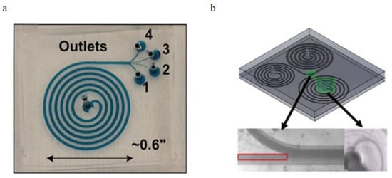 - Guan, G.; Wu, L.; Bhagat, A.A.; Li, Z.; Chen, P.C.; Chao, S.; Han, J. Spiral microchannel with rectangular and trapezoidal cross-sections for size based particle separation. Sci. Rep. 2013, 3, 1475. [Google Scholar] [CrossRef] [Green Version]