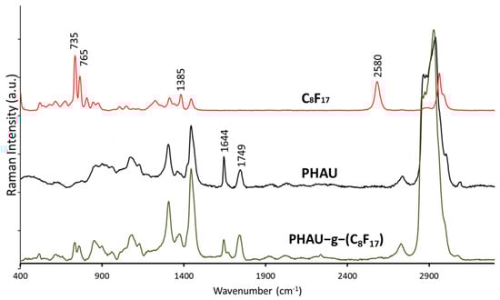 Raman spectra of C8F17, PHAU and PHAU-g-C8F17.