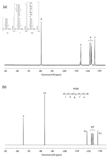 19F NMR spectra. (a) PHA−g−(F; PEG) in CDCl3; (b) Nanocapsules containing PFOB in H2O-D2O (9:1).