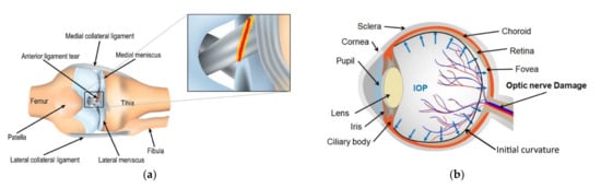 - Rempler, H.-U.; Ehlers, W. Modelling of tear propagation in soft hydrated biological tissue. PAMM 2007, 7, 4030009–4030010. [Google Scholar] [CrossRef]
