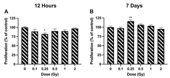- Azzam, E.I.; De Toledo, S.M.; Raaphorst, G.P.; Mitchel, R.E.J. Low-Dose Ionizing Radiation Decreases the Frequency of Neoplastic Transformation to a Level below the Spontaneous Rate in C3H 10T1/2 Cells. Radiat. Res. 1996, 146, 369. [Google Scholar] [CrossRef] [PubMed]