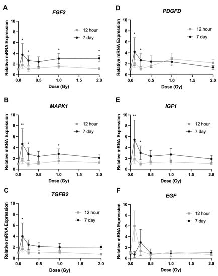 - Chang, P.Y.; Bjornstad, K.A.; Chang, E.; McNamara, M.; Barcellos-Hoff, M.H.; Lin, S.P.; Aragon, G.; Polansky, J.R.; Lui, G.M.; Blakely, E.A. Particle irradiation induces FGF2 expression in normal human lens cells. Radiat. Res. 2000, 154, 477–484. [Google Scholar] [CrossRef]