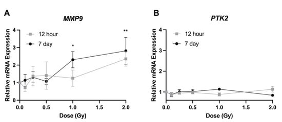 - Chang, P.Y.; Bjornstad, K.A.; Rosen, C.J.; Lin, S.; Blakely, E.A. Particle radiation alters expression of matrix metalloproteases resulting in ECM remodeling in human lens cells. Radiat. Environ. Biophys. 2007, 46, 187–194. [Google Scholar] [CrossRef]