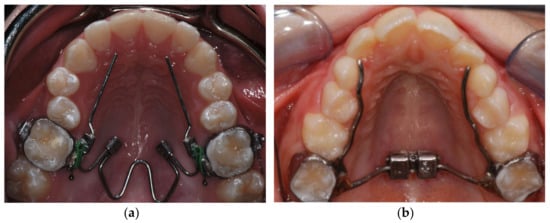 - Karaman, A.I. The effects of nitanium maxillary expander appliances on dentofacial structures. Angle Orthod. 2002, 72, 344–354. [Google Scholar] [CrossRef]