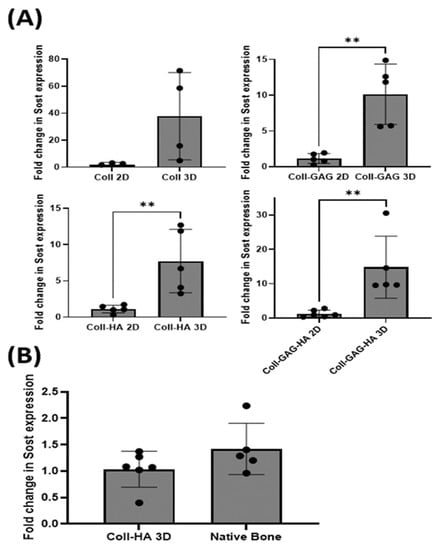 3.5. MLO-Y4 Osteocyte-like Cells Express Physiological Levels of Sost in Coll-HA 3D Environments