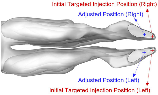 The positions for the adjusted targeted injections were shifted several millimeters back from initial positions. Figure 8 shows the targeted injection positions.