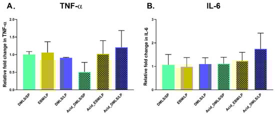 3.4. TNF-α and IL-6 Gene Expressions