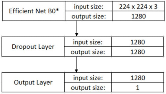 Model architecture (EfficientNet without its last layer). The “*” refers to the “(EfficientNet without its last layer)” in the figure description.