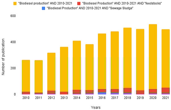 - Two broad perspectives related to this research area have been emphasized. The first is the generalized view of the articles that engage in the topic of feedstocks for biodiesel production. It is concluded that there is a great deal of discussion regarding the economy versus sustainability dilemma, and researchers have sought practical solutions to the problems that arise from this. The second perspective concerns the recent emergence of academic interest in studying sewage sludge for biodiesel production. It is understood that this area will be further explored in the near future due to the solution that this raw material represents to the conundrum above.