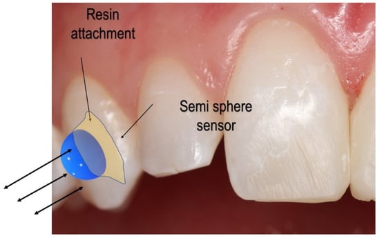 Figure 1 displays the sensor setup over the clear aligner attachment. Based on the clear aligner technique, attachments made of dental composites are bonded over the tooth’s surface. An attachment’s most basic function is retention and force guidance. In order to fully realize the intended tooth movements, the aligners have to be fully seated and embrace the composite attachment. Aligners have the flexibility that needs to be compensated when seated onto dental units that require movement. The second function of attachments is to facilitate movement by changing the tooth’s surface area to provide an active surface for pushing (Figure 1).