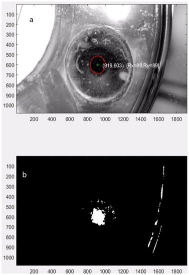 For the accurate image capture of the dynamic contact area, the force vector tracking software was implemented using Matlab that reads the movie clip from the microscope and tracks the center and contact surface area. The software run example is shown in Figure 6, where the contact area change is calculated by image processing (into black and white) and counting white pixels. The optimum forces for orthodontic tooth movement range from 10~20 g (intrusion) to 0.1~0.2 N (intrusion) to 0.7~1.2 N (bodily translation), depending on the type of movement. For the proof of concept, an excessive force that varies by the amplitude up to 7.0 N was applied.