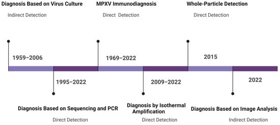 Overview of MPXV diagnostics. The years indicate the time frames of the published articles discussed in this manuscript.