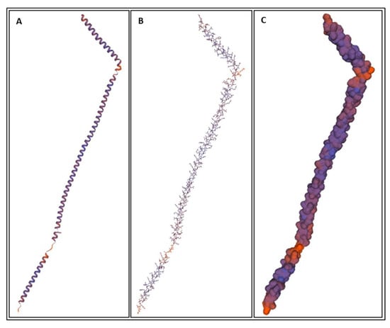 (A) A cartoon model, (B) a ball-and-stick model, and (C) a surface model of MAP-2 [].