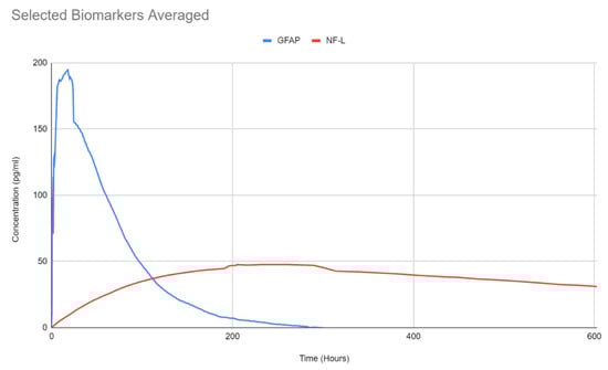 Therefore, the objectives of this research were manyfold; readers interested in a specific topic are directed to specific sections at the end of each objective accomplished during this research. The objectives were to (1) identify TBI biomarkers from literature and perform homology modeling of their 3D protein structures (Section 2), (2) identify TBI biomarkers from clinical trials and their potential applications in diagnosis (Section 3), (3) perform Molecular Dynamics (MD) simulations of biomarkers (Section 4), (4) blood–brain barrier cascades and metabolic pathways of select biomarkers (Section 5) and (5) biomarker kinetics so that diagnostic capabilities improved for prognosis and rehabilitation (Section 6). This paper discusses each of these objectives in this sequence (1–5). The temporal profiles of these TBI biomarkers and the mechanisms by which the biomarkers become overexpressed and pass through the blood–brain barrier into the blood stream were reviewed. We identified biomarkers from literature for TBI/CTE/PTSD in Table 1.