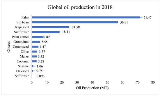 Global oil production in 2018 from oilseed crops. Adapted with permission from Nehmeh et al. [].